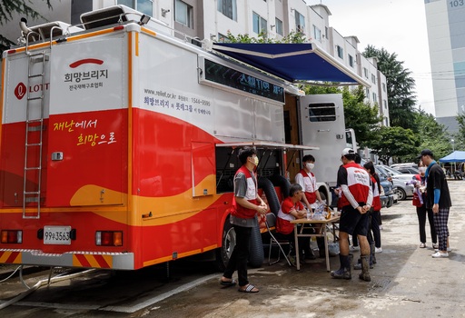 롯데는 지난 7월부터 폭우 피해 지역에 대한 지원을 이어오고 있다. 강원도 삼척시청에 컵라면을 비롯한 긴급 구호 물품 총 2000개를 전달했으며, 경북 영덕군 강구보건지소와 대전 코스모스아파트에는 세탁구호차량을 지원한 바 있다.
