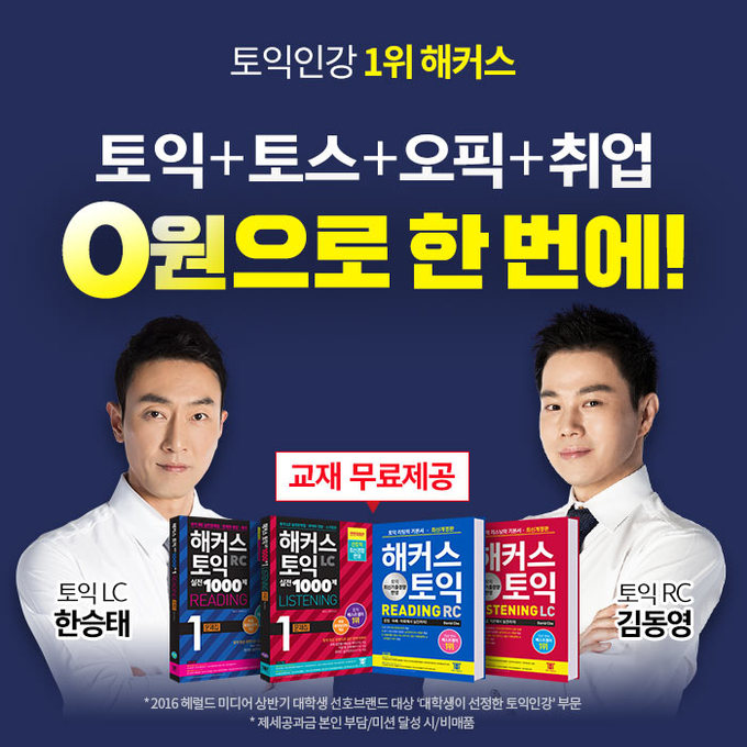 업체 측에 따르면 해당 패키지의 수강생에게는 한승태, 김동영 등 토익 전문 강사의 수준별·파트별 토익 인강을 제공한다. 특별판 비매품 교재인 토익 기본서 또는 1000제 중 한 권과 해커스어학연구소에서 엄선한 토익·토스오픽·취업팩도 무료로 제공한다. 실전 시험 대비를 위한 <김동영 단기고득점 필기노트>와 파이널 적중 모의고사(봉투형/비매품) 실물 교재도 배송비만 결제하면 받아볼 수 있다. (5G 0원반 제외)