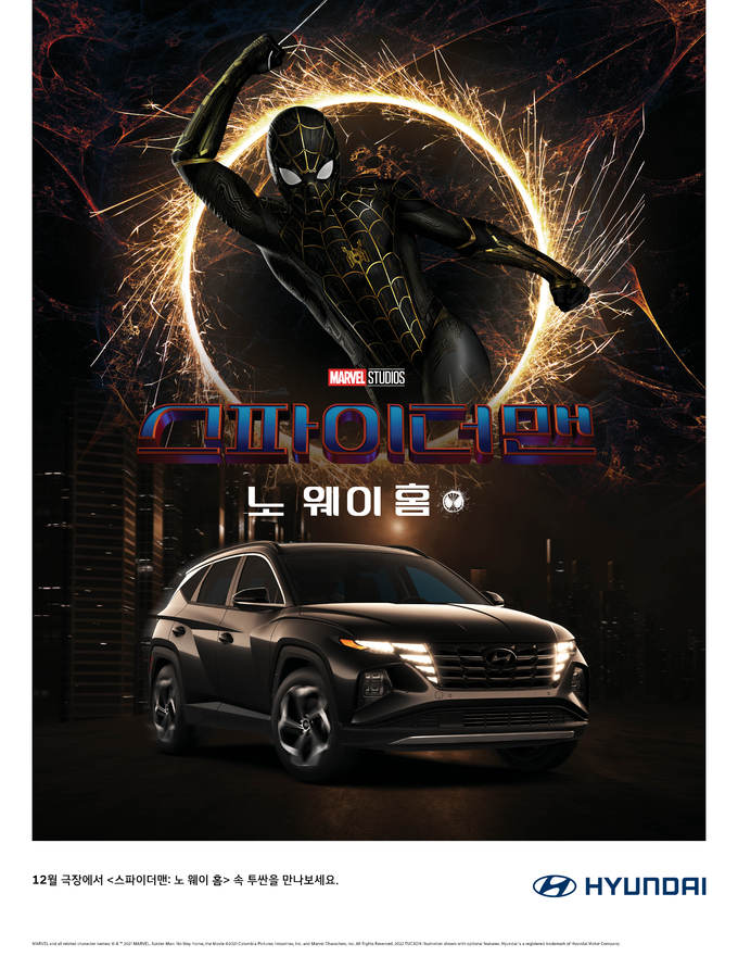 ‘스파이더맨: 노 웨이 홈’에는 현대차의 아이오닉 5와 투싼이 영화 속 주요 장면에 등장하면서 다양한 차량 액션신들을 선보인다. 아이오닉 5와 투싼은 극적 긴장감을 극대화하고 역동적인 볼거리로 관객들의 시선을 사로잡을 예정이다.