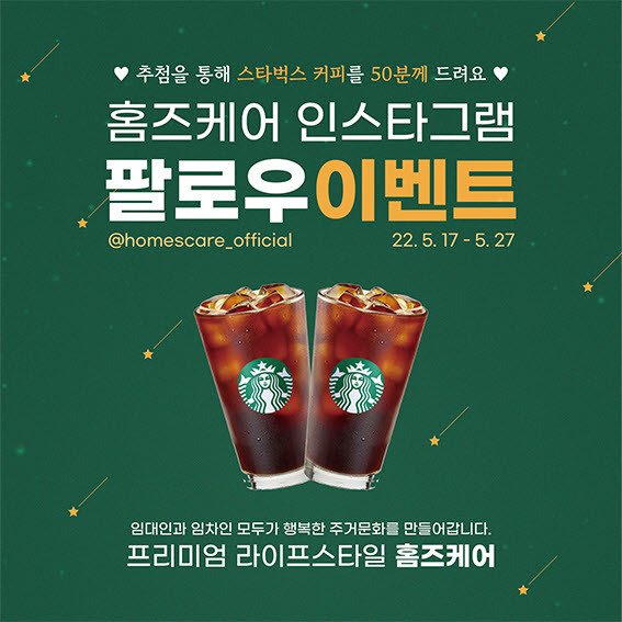 이벤트 참여는 홈즈케어 인스타그램 공식 채널을 팔로우하고, 참여 완료 댓글을 남기면 응모된다. 총 50명 추첨을 통해 커피 쿠폰을 증정할 예정이다.
