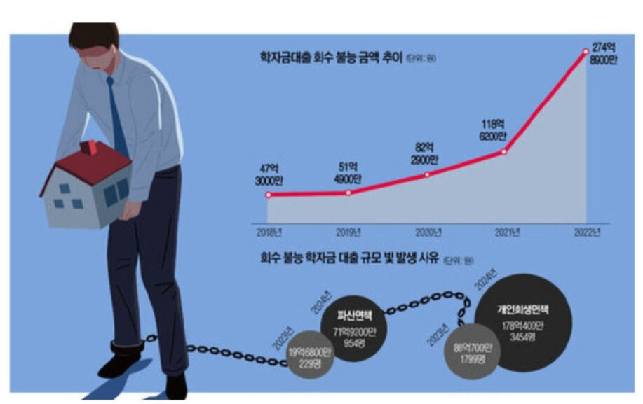 시중 금리가 상승하면서 다른 대출의 이자 부담이 높아진 청년들이 학자금 대출까지 갚지 못하는 현상이 벌어지고 있다. 대부분 차주는 대학 졸업 후 취업해 학자금 대출을 상환하는데, 집값 상승, 빚투 열풍까지 겹치면서 청년들의 빚 부담이 커진 것으로 보인다. 장학재단 관계자는 “학자금 대출을 갚지 못한 인원들은 대부분 다른 채무도 보유하고 있다”며 “학자금 대출 자체가 커서라기보다는 고금리로 (다른 빚을 갚지 못해) 개인 회생·파산이 늘어나면서 학자금 대출을 갚지 못하게 된 것으로 보인다”고 설명했다.