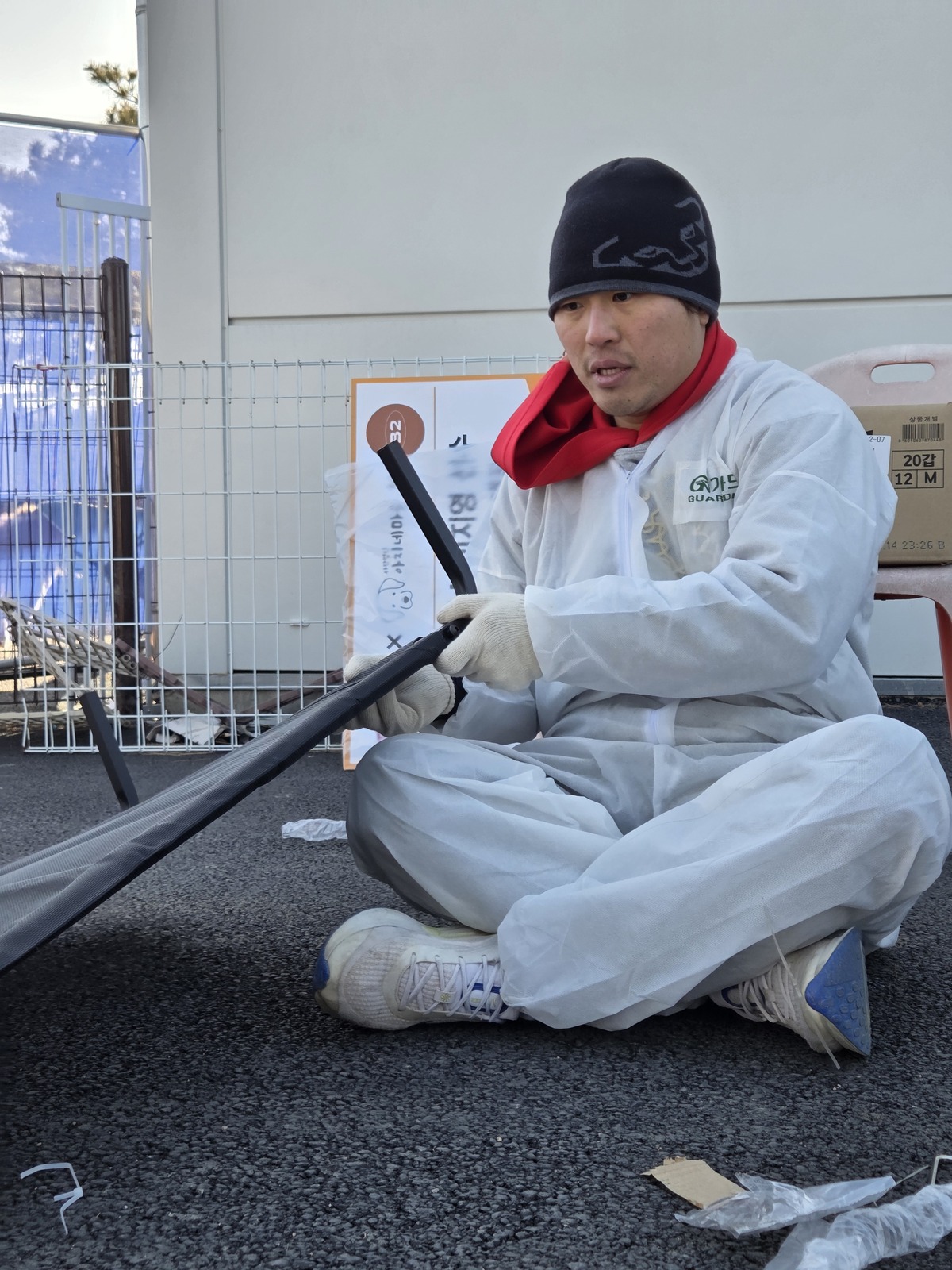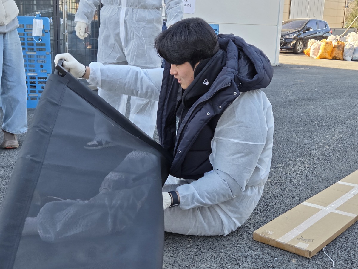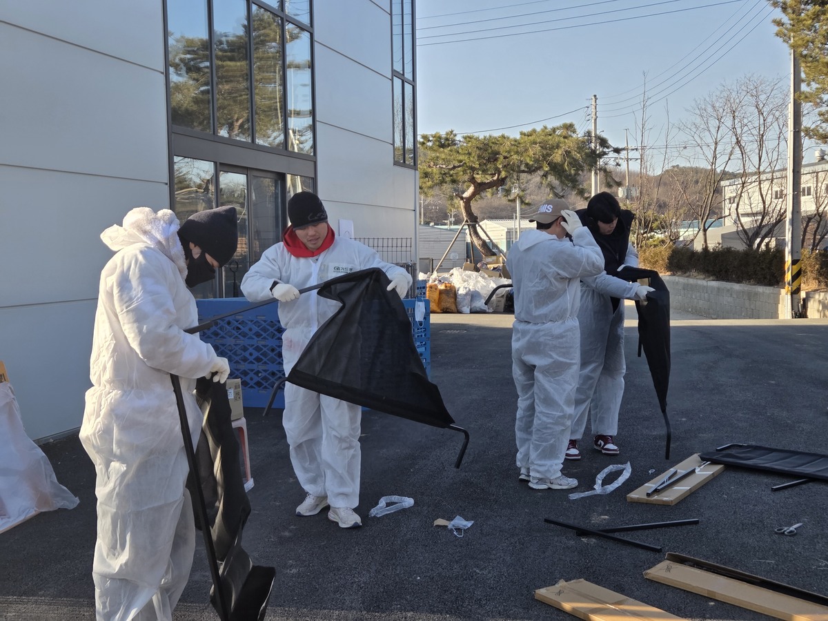 보호소의 추운 견사 바닥을 피하게 해줄 간이 침대 조립은 건장한 운동선수들도 낑낑댈 만큼 힘든 작업이었다. 그래도 다들 1인분 이상을 하면서 총 14개 침대가 완성돼 견사로 투입됐다.