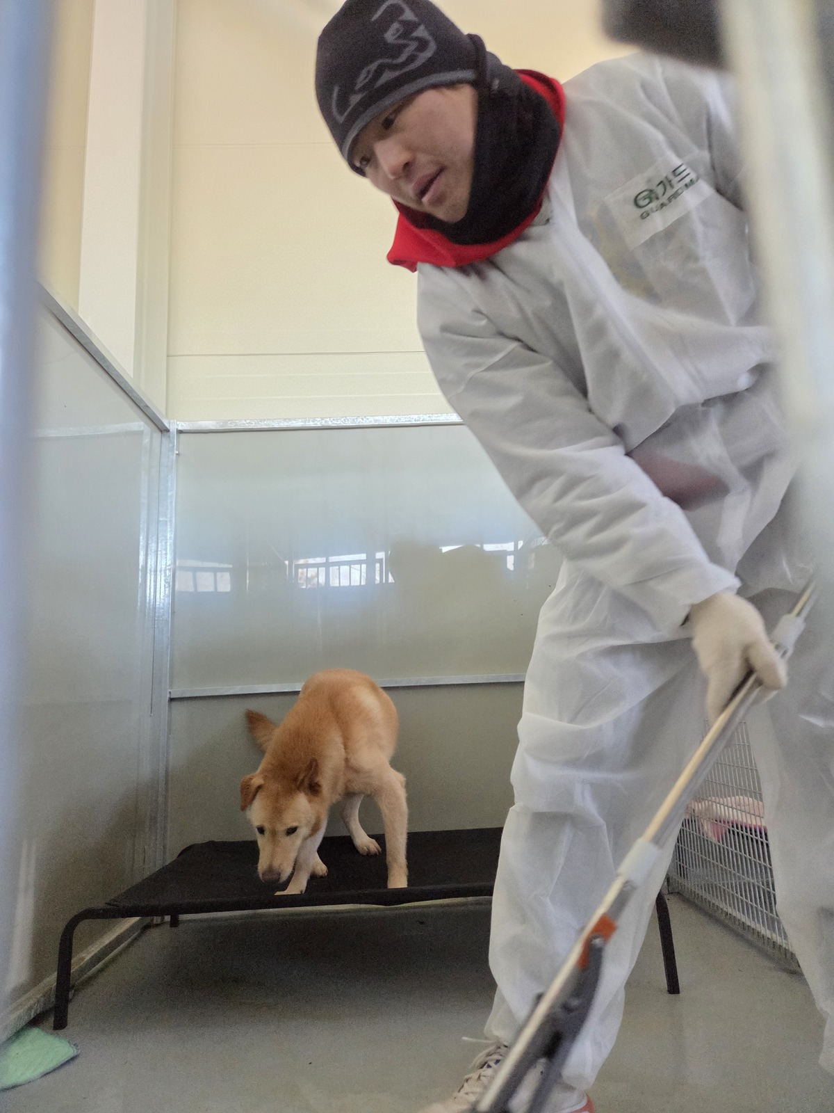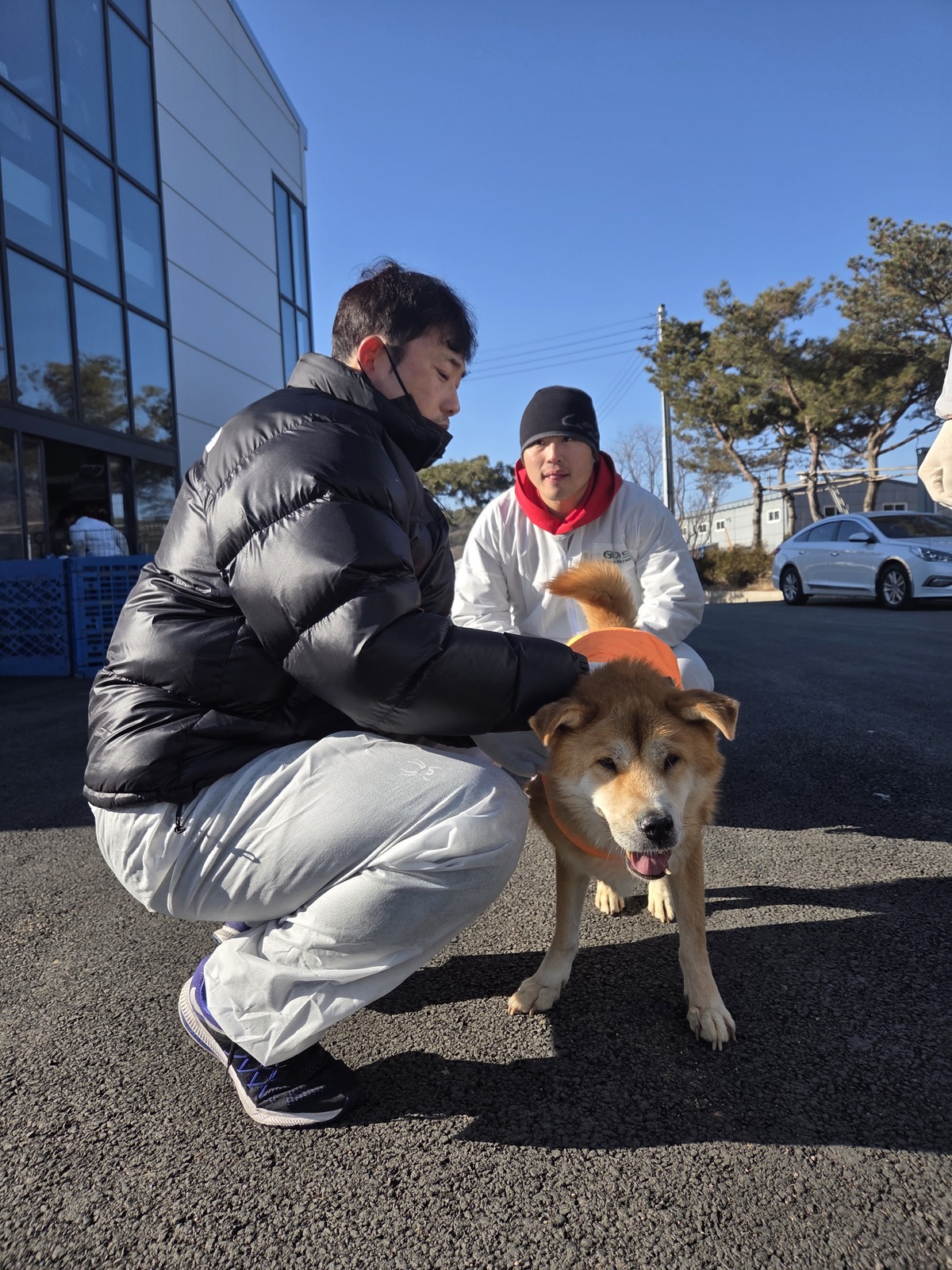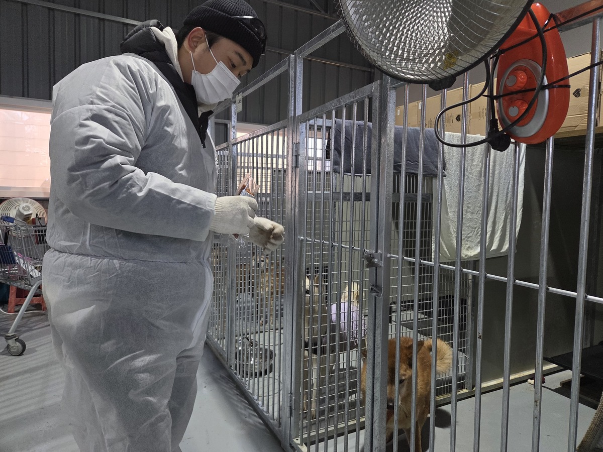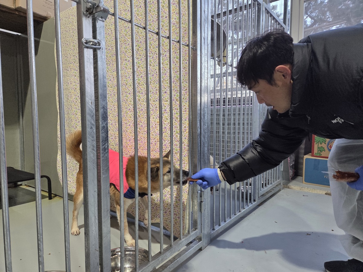 견사 청소도 누구 하나 빠지지 않았다. 내부 견사는 어쩔 수 없이 냄새가 날 수 밖에 없는데 다들 방진복을 입고 배설물을 치웠다. 추운 겨울을 지낼 전기히터 설치에도 힘을 모았다. 마지막으로 물과 간식 급여를 마치니 어느덧 해가 뉘엿뉘엿 저물고 있었다.