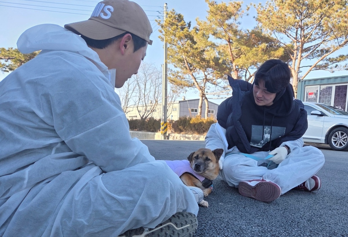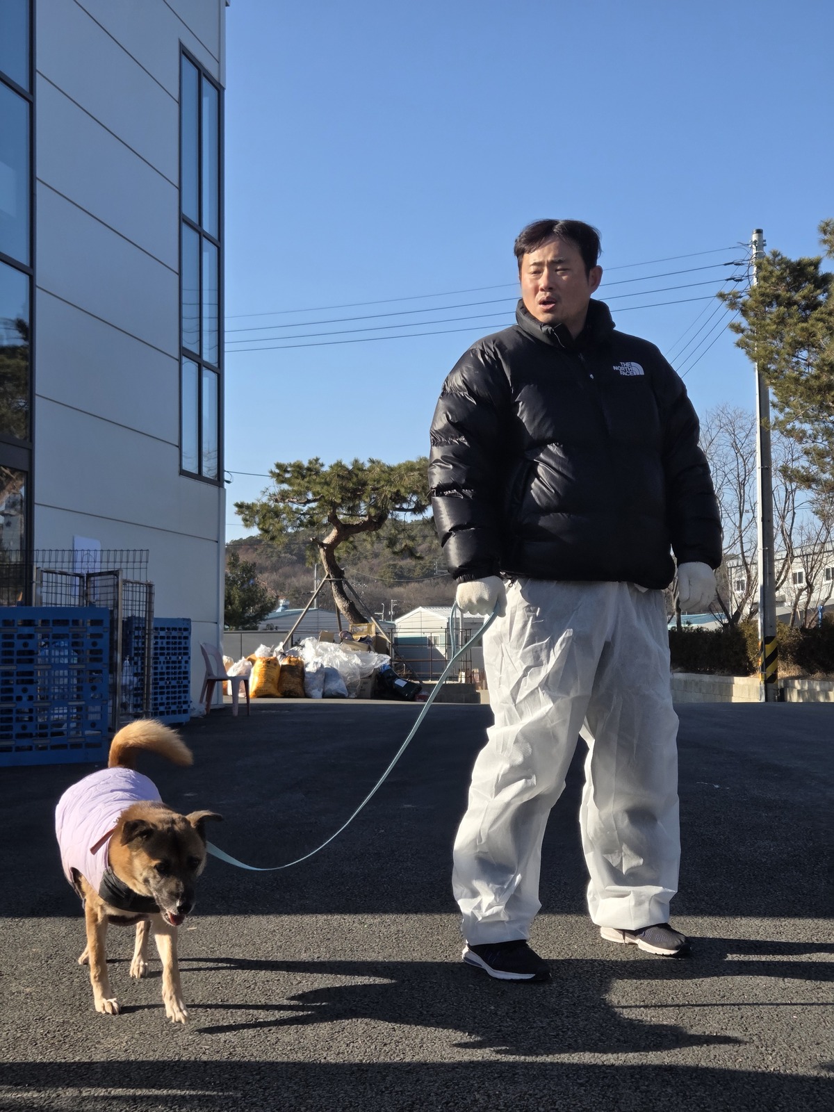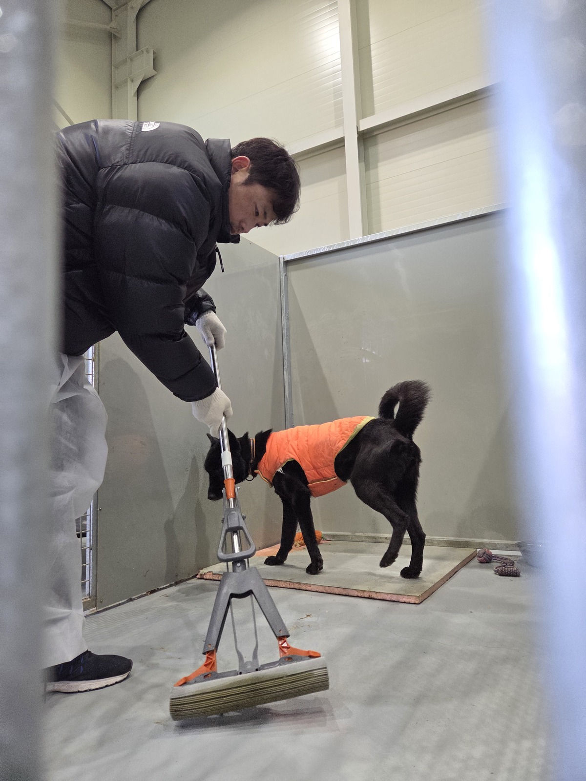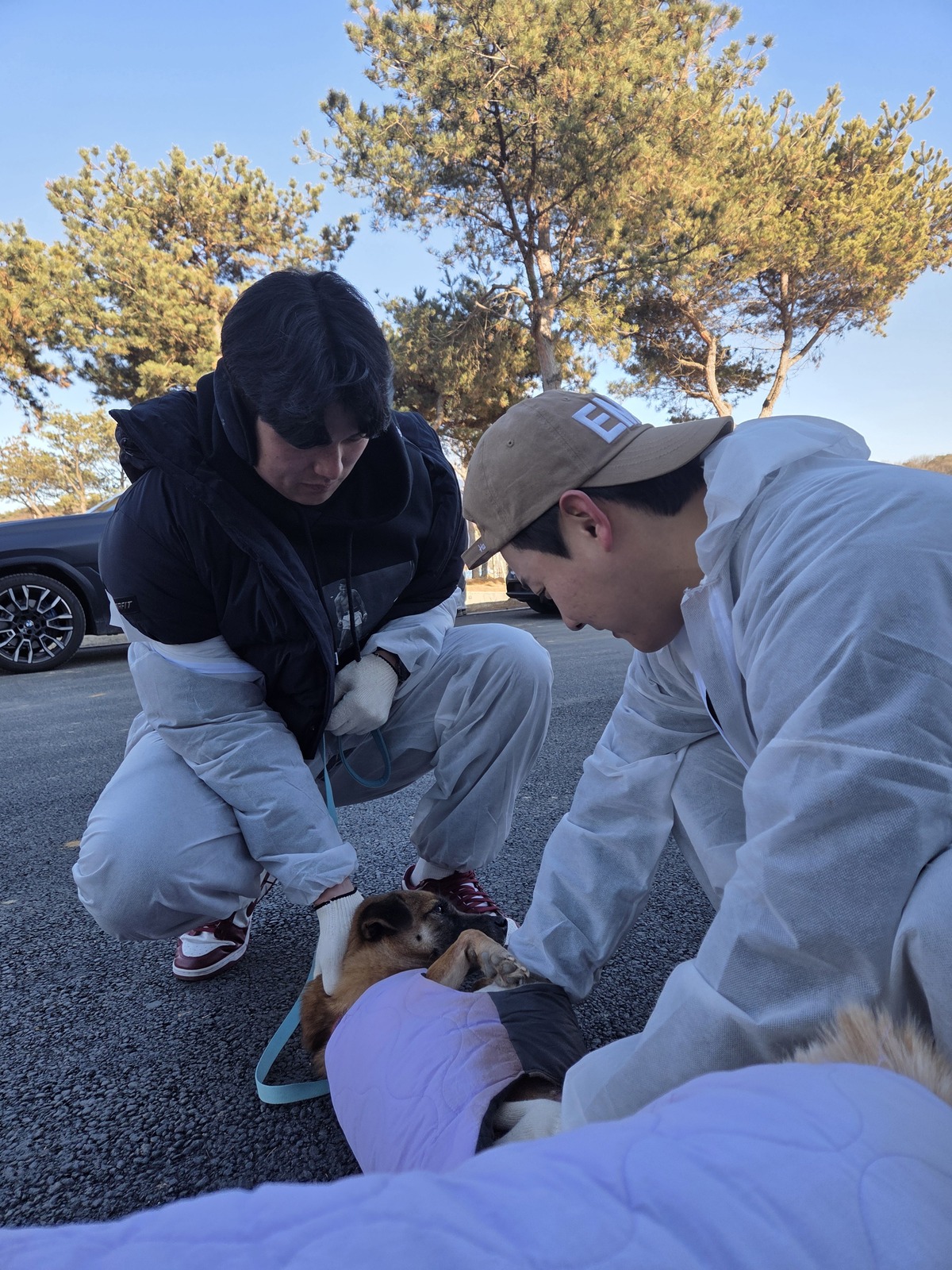 견사 청소도 누구 하나 빠지지 않았다. 내부 견사는 어쩔 수 없이 냄새가 날 수 밖에 없는데 다들 방진복을 입고 배설물을 치웠다. 추운 겨울을 지낼 전기히터 설치에도 힘을 모았다. 마지막으로 물과 간식 급여를 마치니 어느덧 해가 뉘엿뉘엿 저물고 있었다.