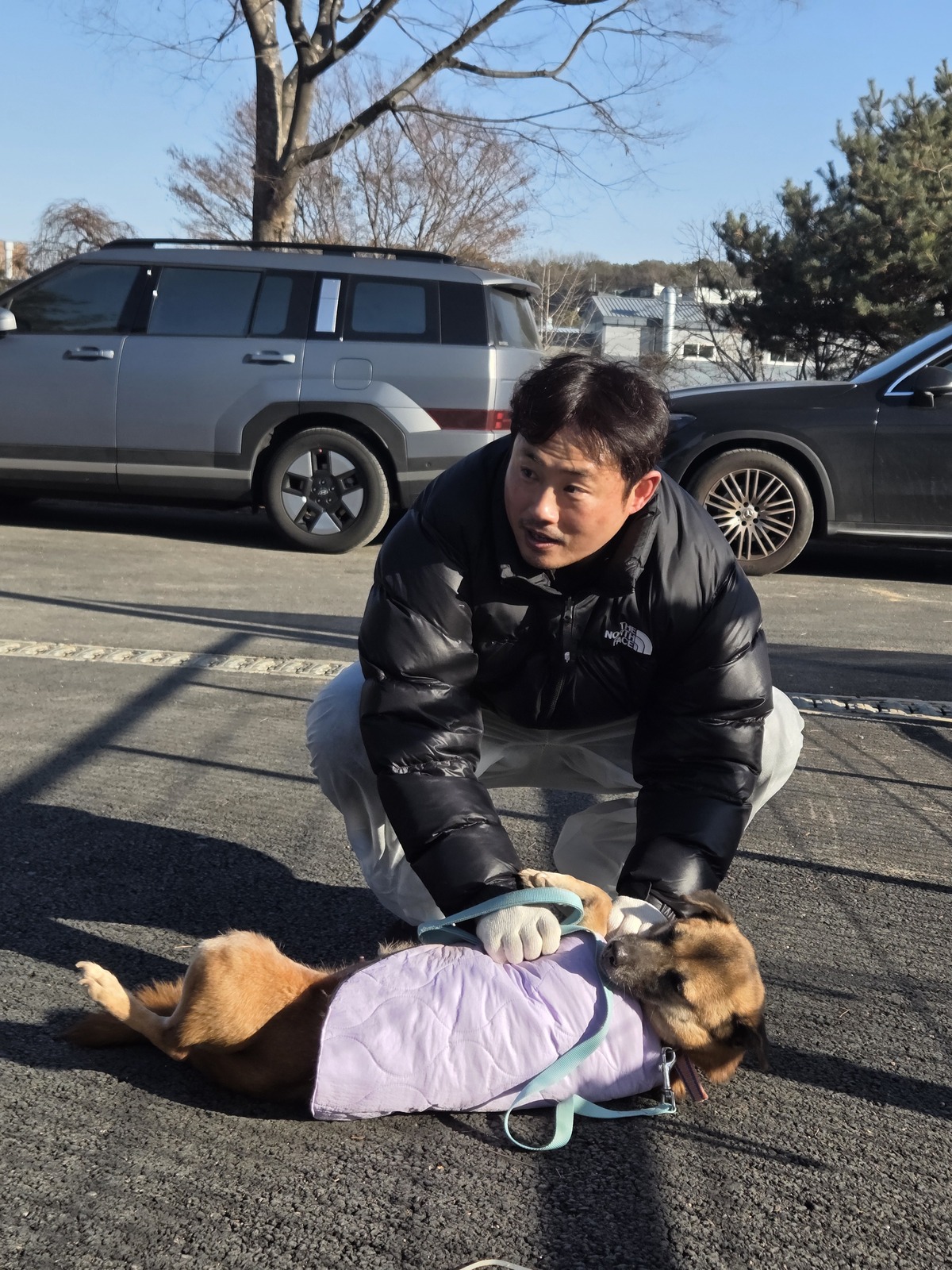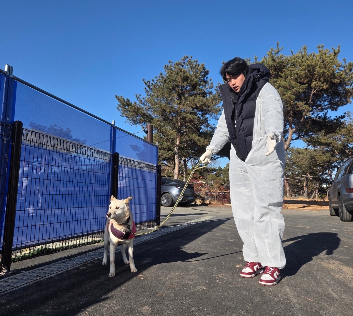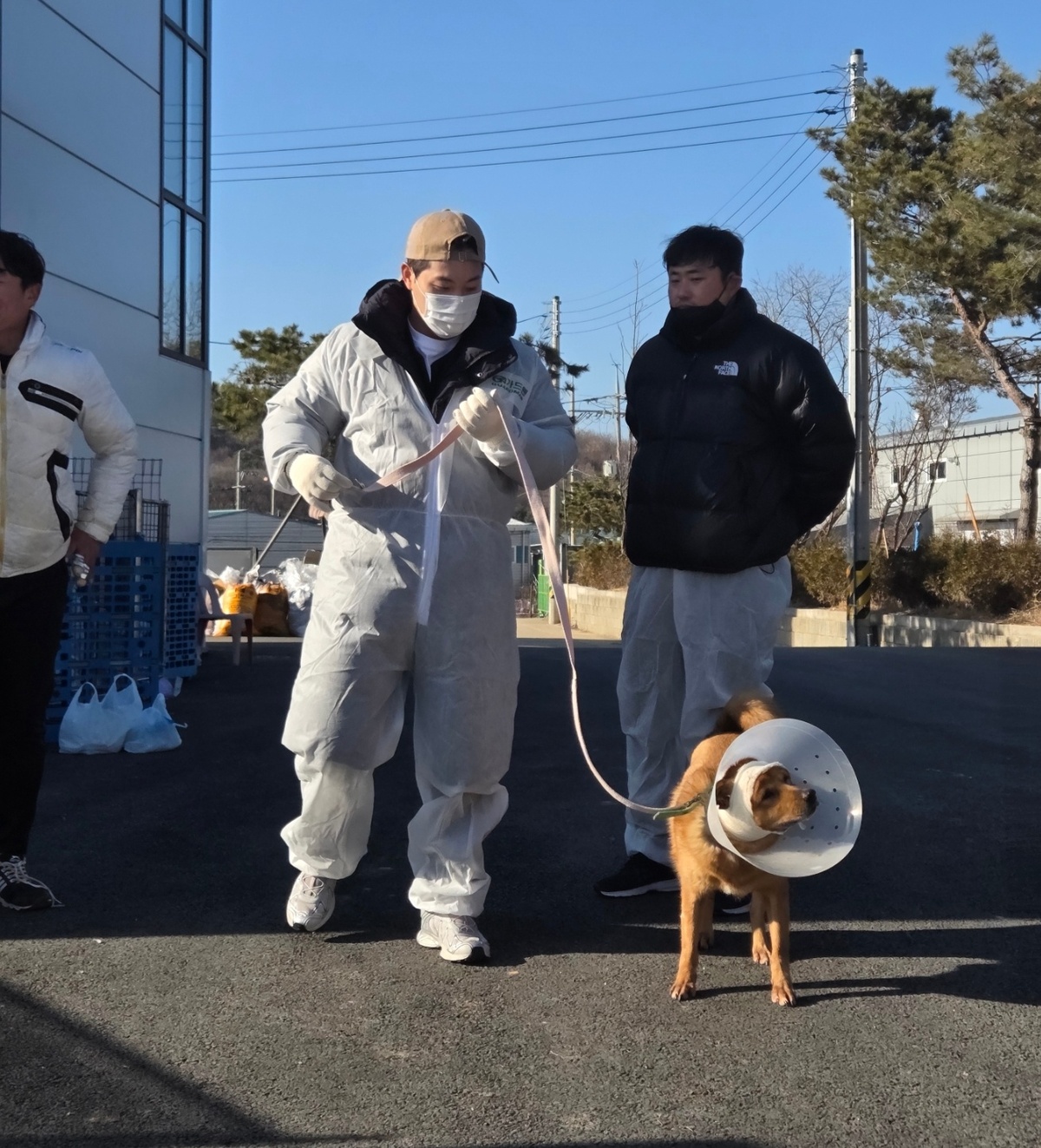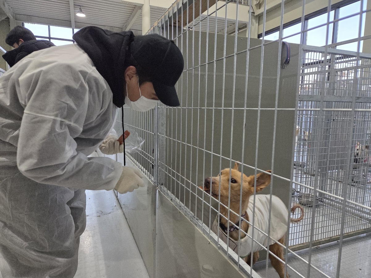 견사 청소도 누구 하나 빠지지 않았다. 내부 견사는 어쩔 수 없이 냄새가 날 수 밖에 없는데 다들 방진복을 입고 배설물을 치웠다. 추운 겨울을 지낼 전기히터 설치에도 힘을 모았다. 마지막으로 물과 간식 급여를 마치니 어느덧 해가 뉘엿뉘엿 저물고 있었다.