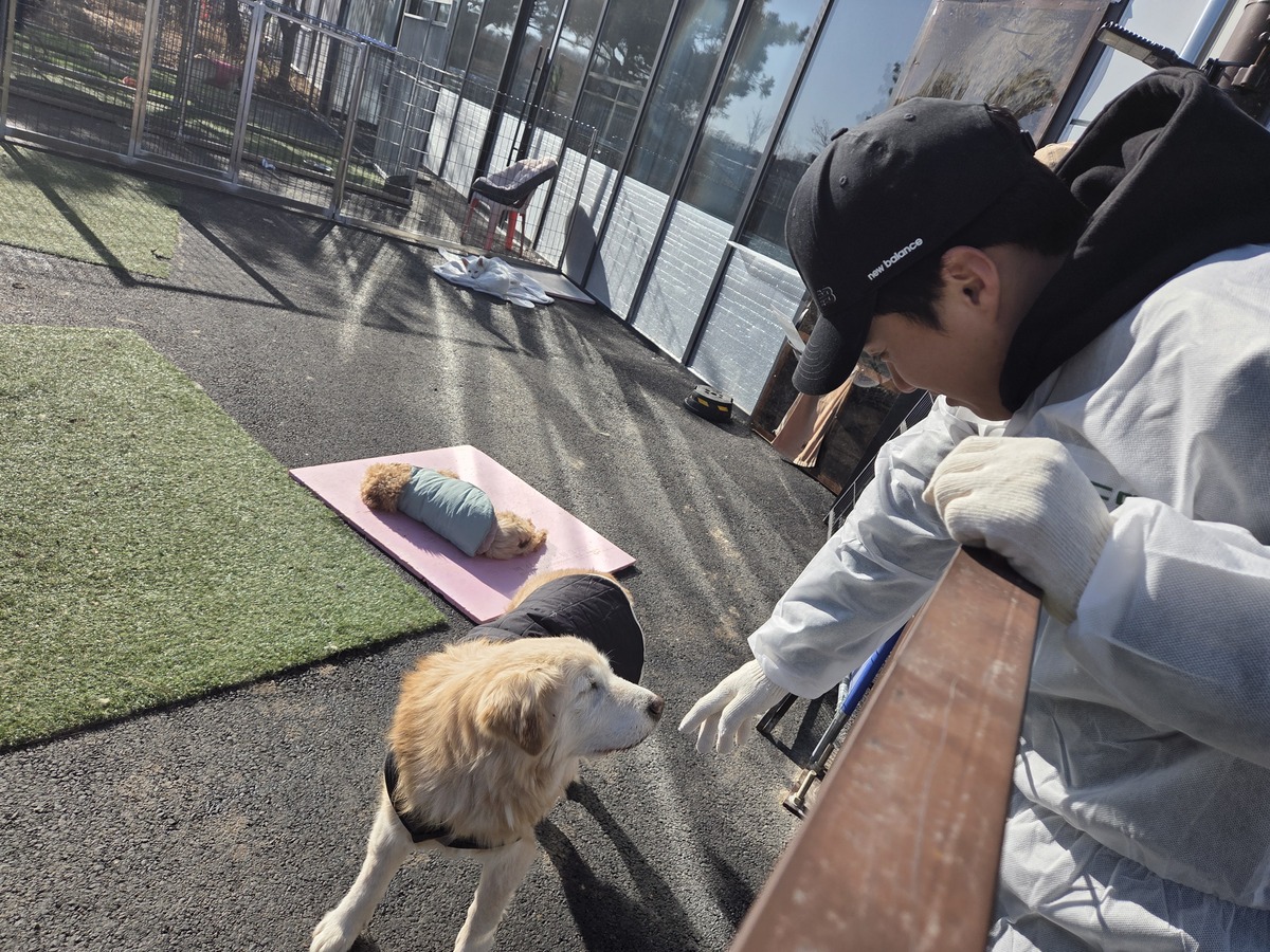 이날 김포의 낮 기온은 영하 3도. 사람과 강아지의 입에서 하얀 김이 올라오는 추운 날씨에도 이들 봉사단은 3시간 넘게 산책 봉사, 견사 청소, 침대 만들기 등 휴식 시간도 없이 활동을 이어갔다. 점심식사도 김밥으로 해결하며 강아지들에게 마음을 쏟았다.